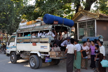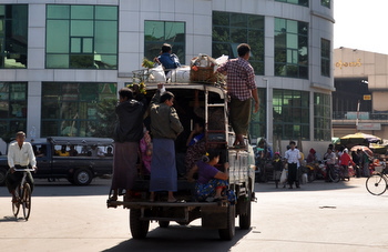 en bus à Yangon.