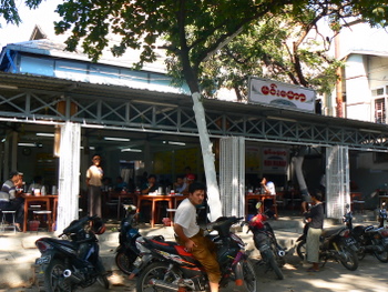 autour d’un bon plat de biryani au poulet, spécialité de la maison. (Nila Biryani Shop – Anawrahta Road)