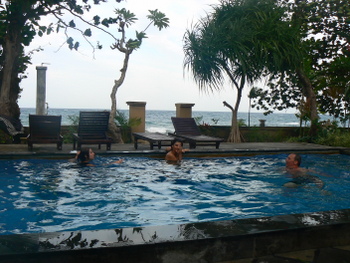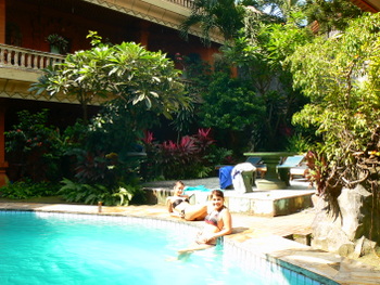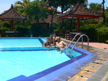 nous retrouvons notre petit hôtel familial à Kuta, l’Anemone Hotel. Nous portons une grande lessive